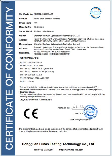 Shenzhen Baichuan Photoelectricity Technology Co., Ltd. Certifications
